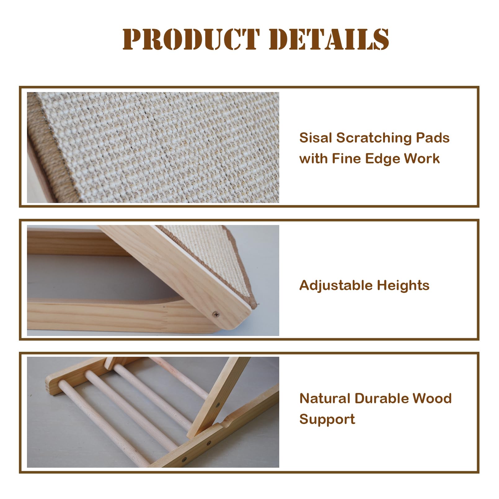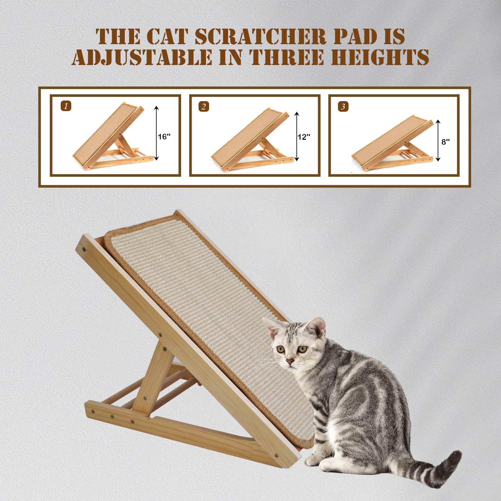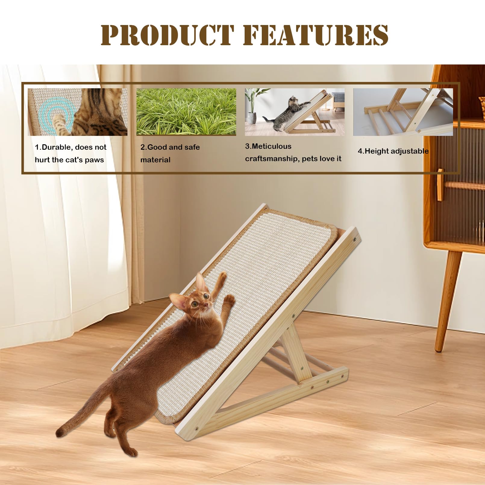 Adjustable Cat Scratcher - Angled Sisal Ramp with Solid Wood Base