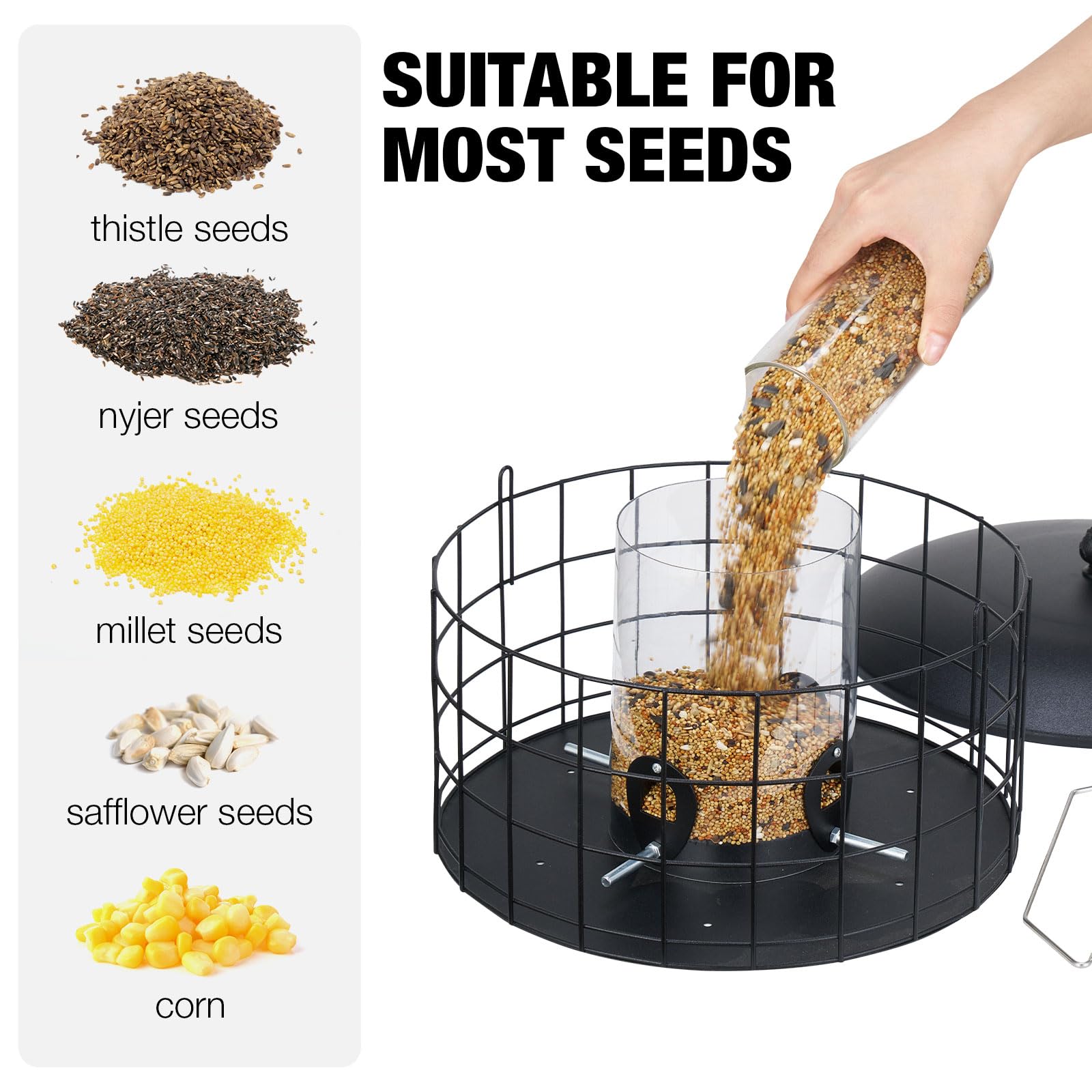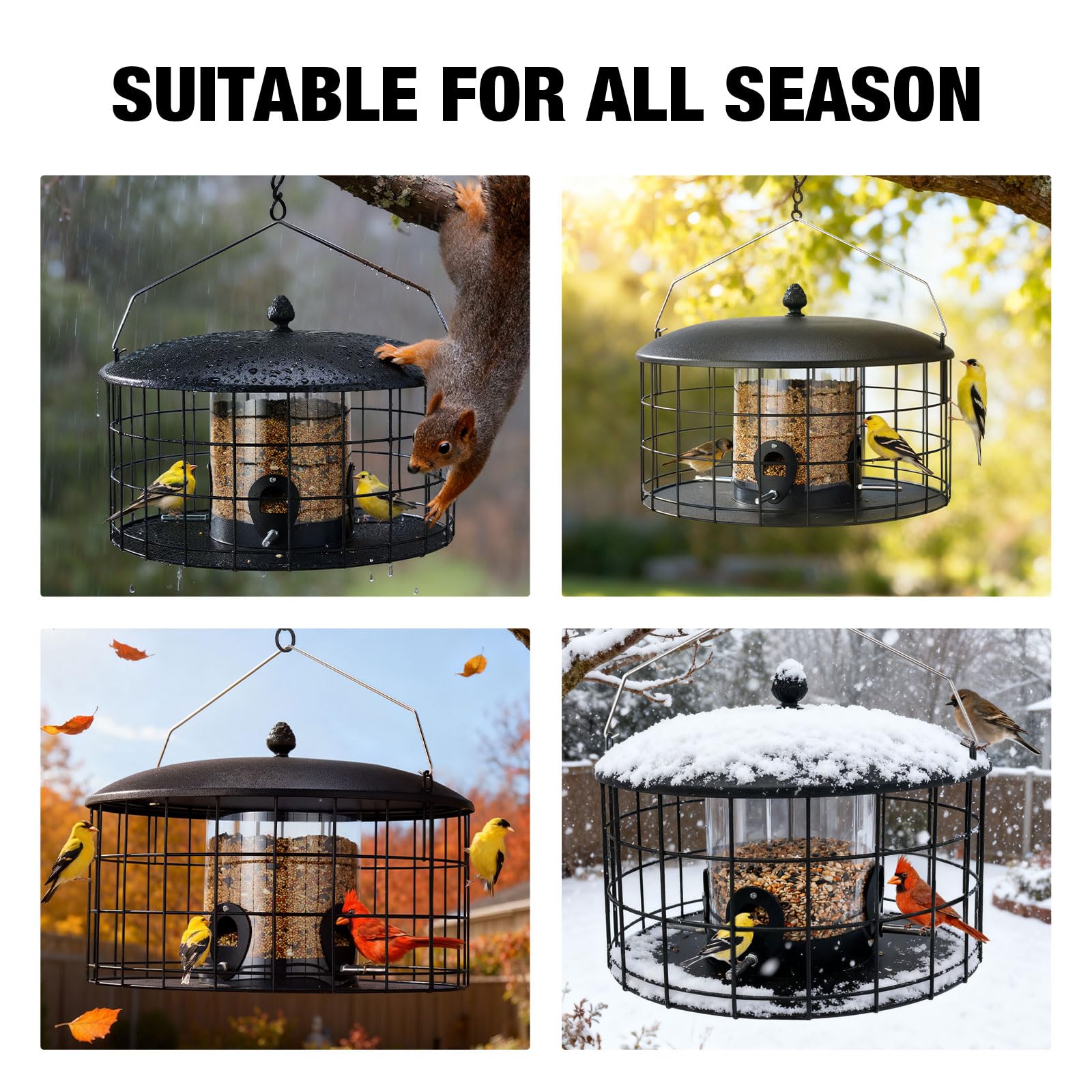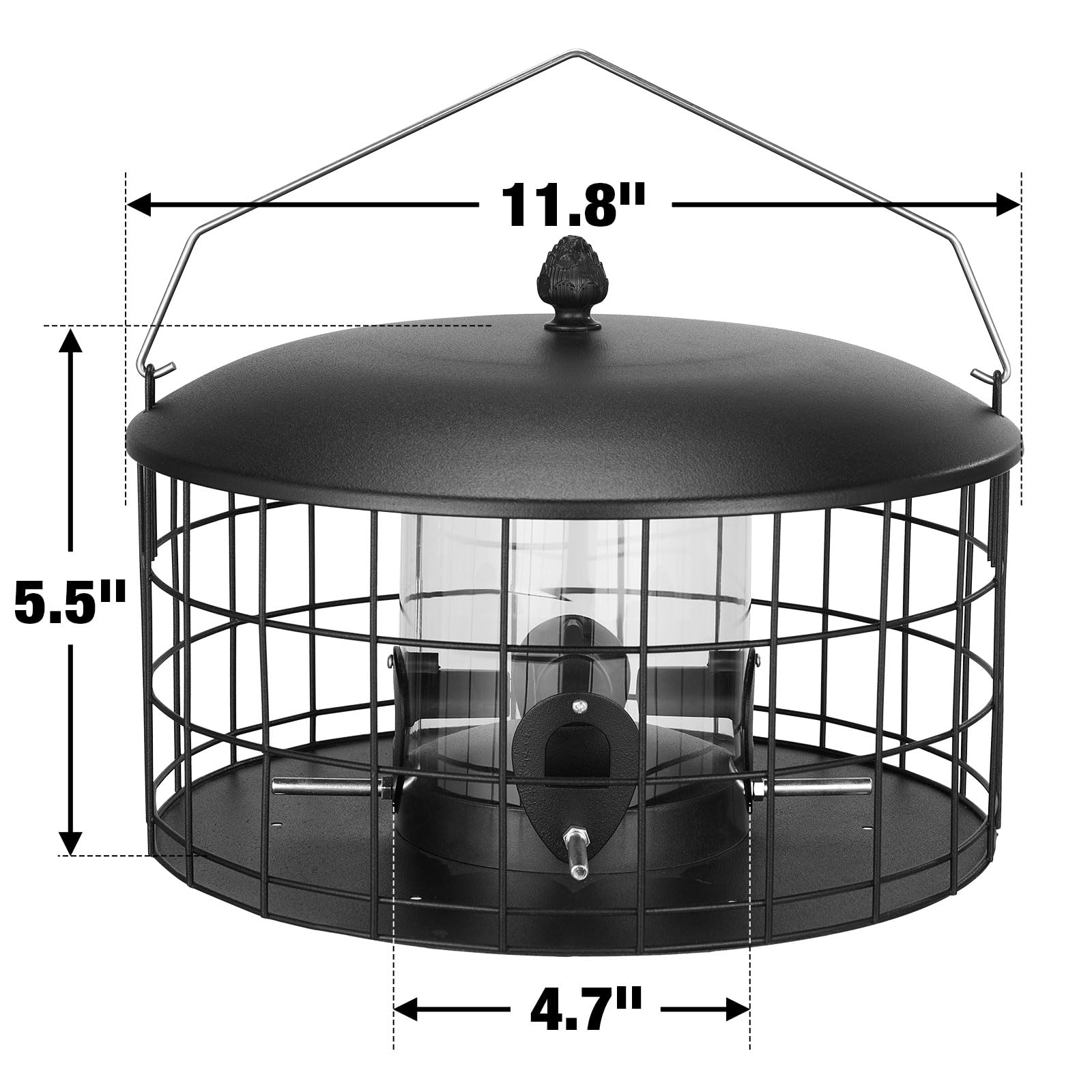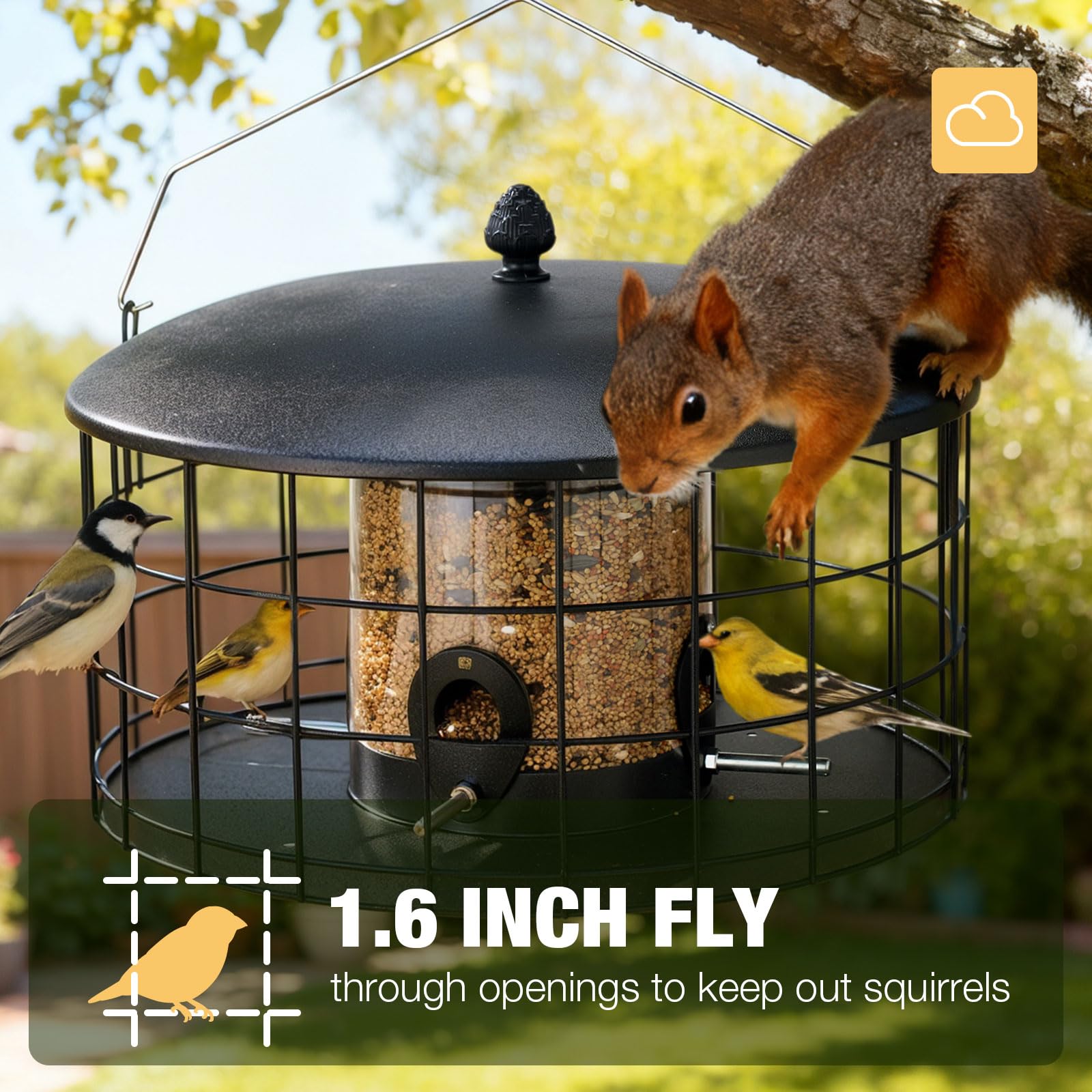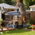 - Metal mesh cage prevents squirrel access