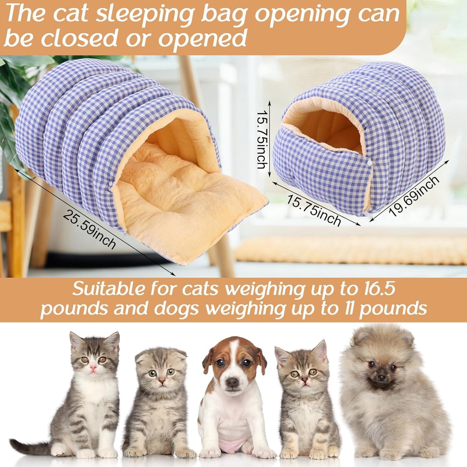 Cozy Pet Sleeping Bag - Plush Checkered Cave with Removable Mat