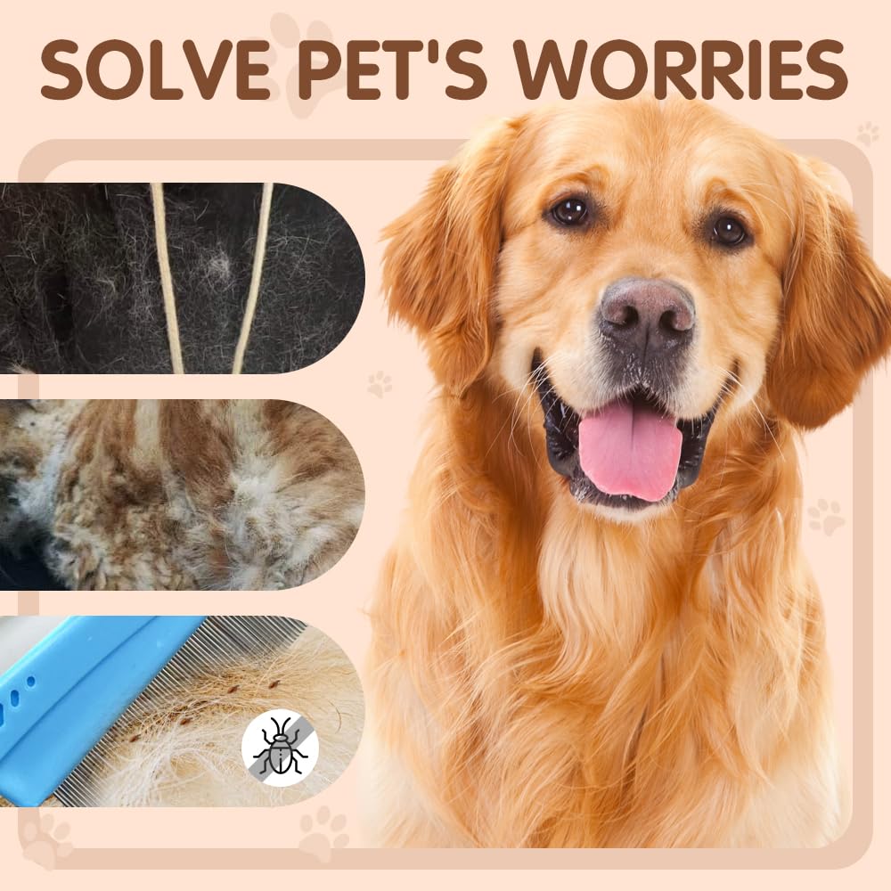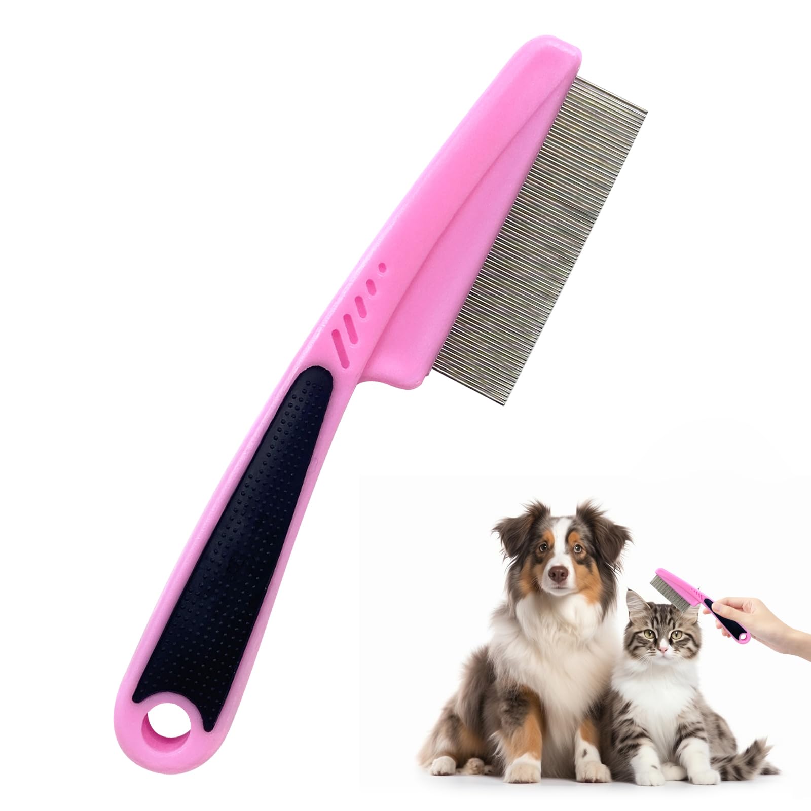 Fine-Tooth Pet Comb - Rubber Grip Flea & Dandruff Remover