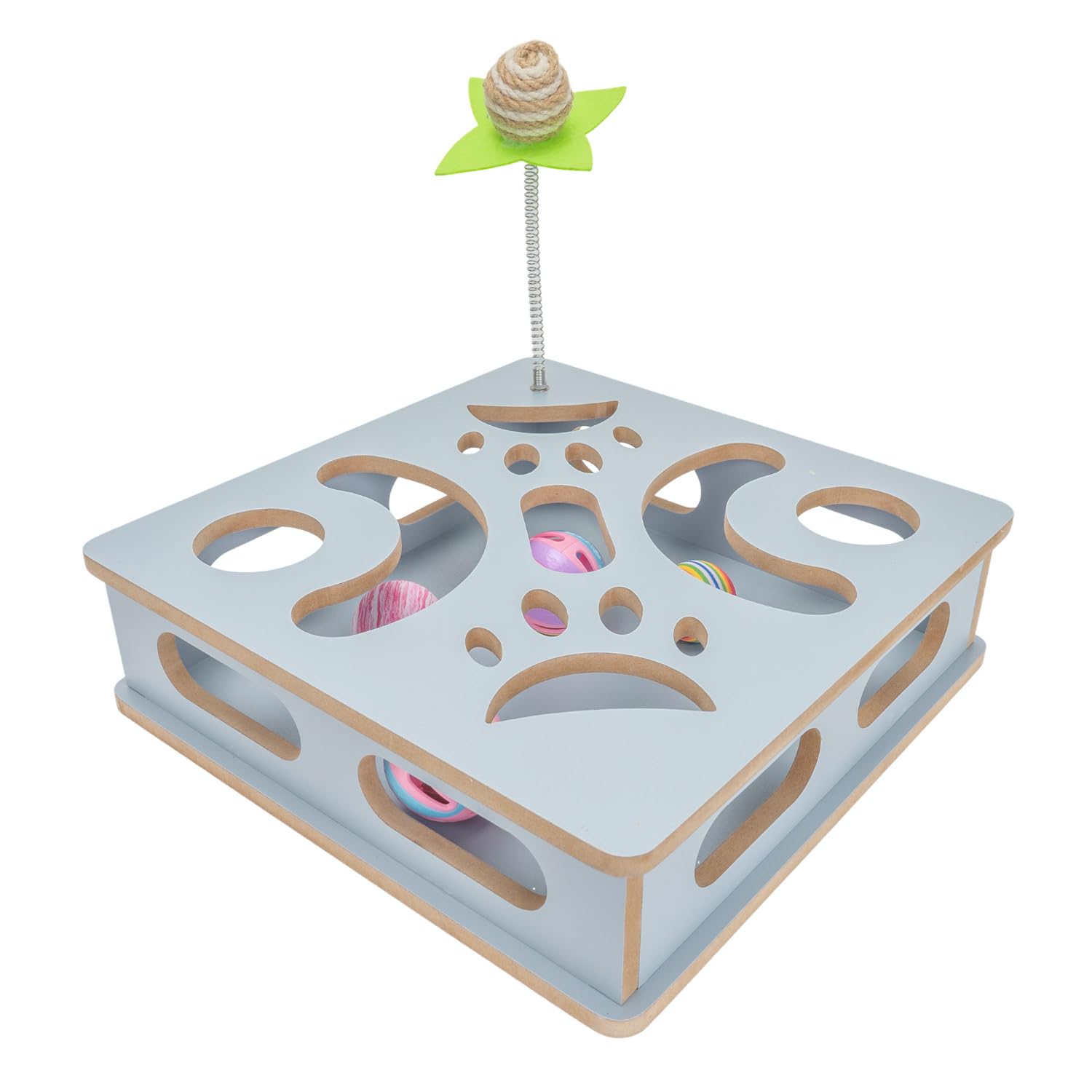Interactive Cat Puzzle Box - Wooden Hunting Game with Spring Teaser