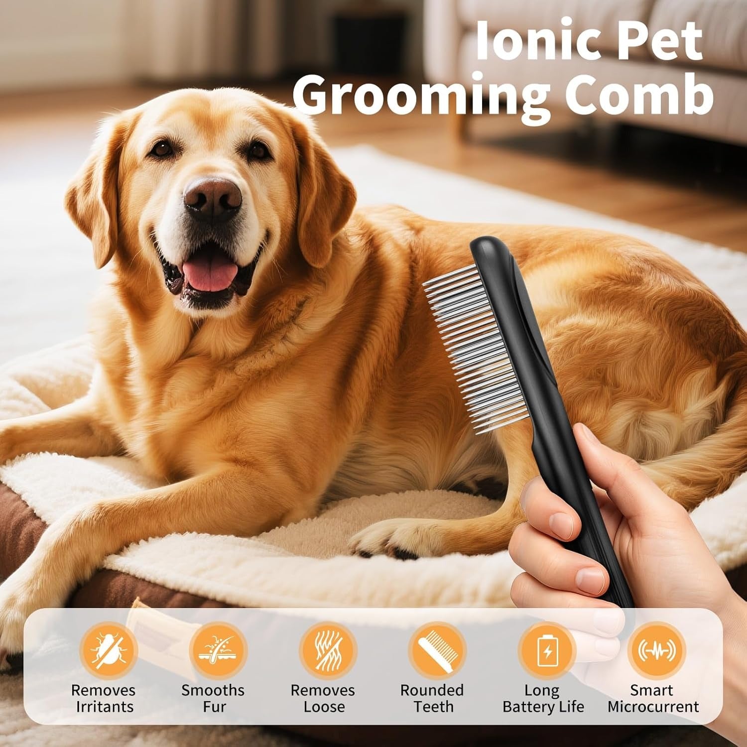 Ionic Pet Grooming Comb - USB Rechargeable Detangler with Safety Lock