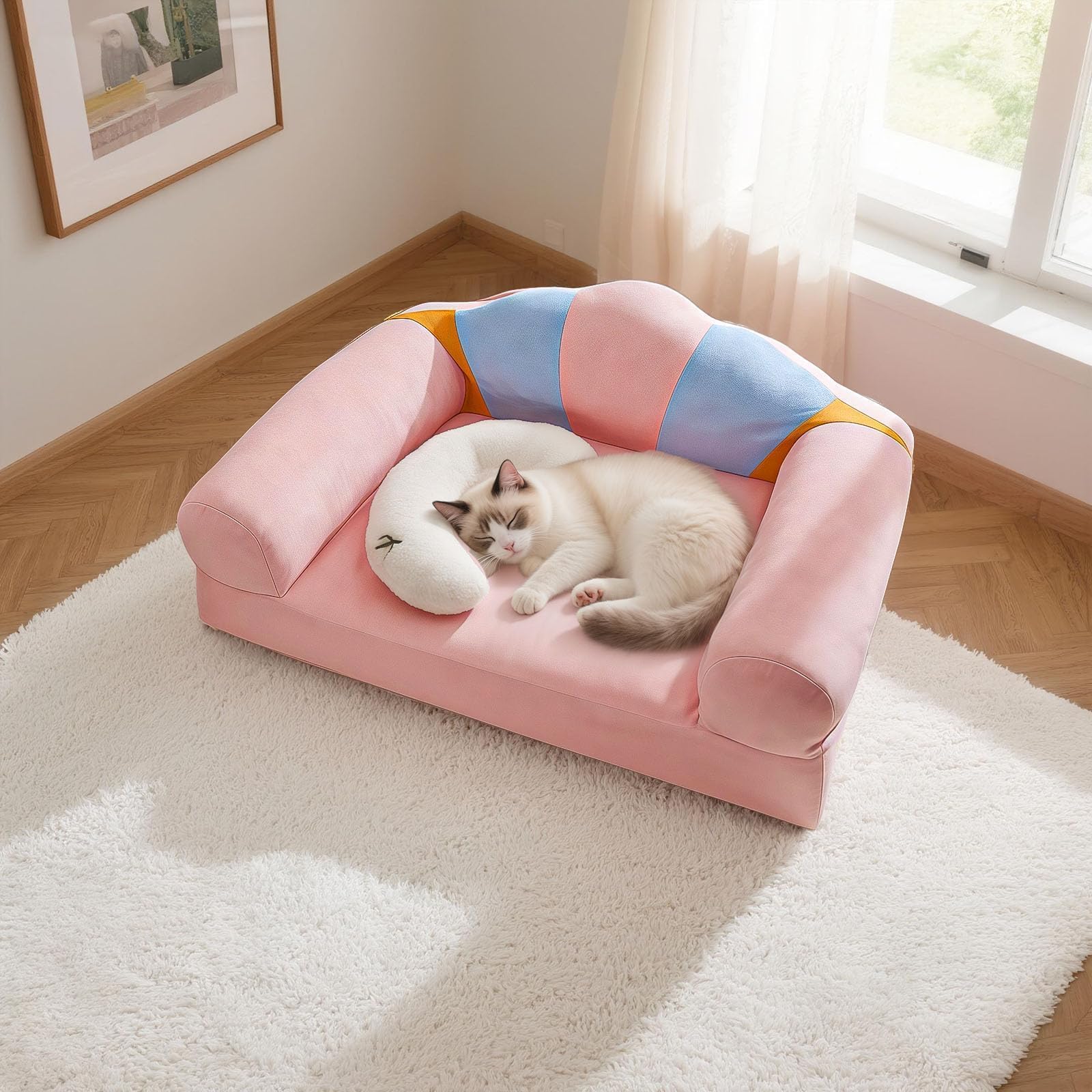 Designed for your special companion, this charming pet sofa combines whimsical aesthetics with practical comfort. The unique crescent-shaped armrests create an inviting space for your pet to relax while adding a touch of celestial charm to your home decor.