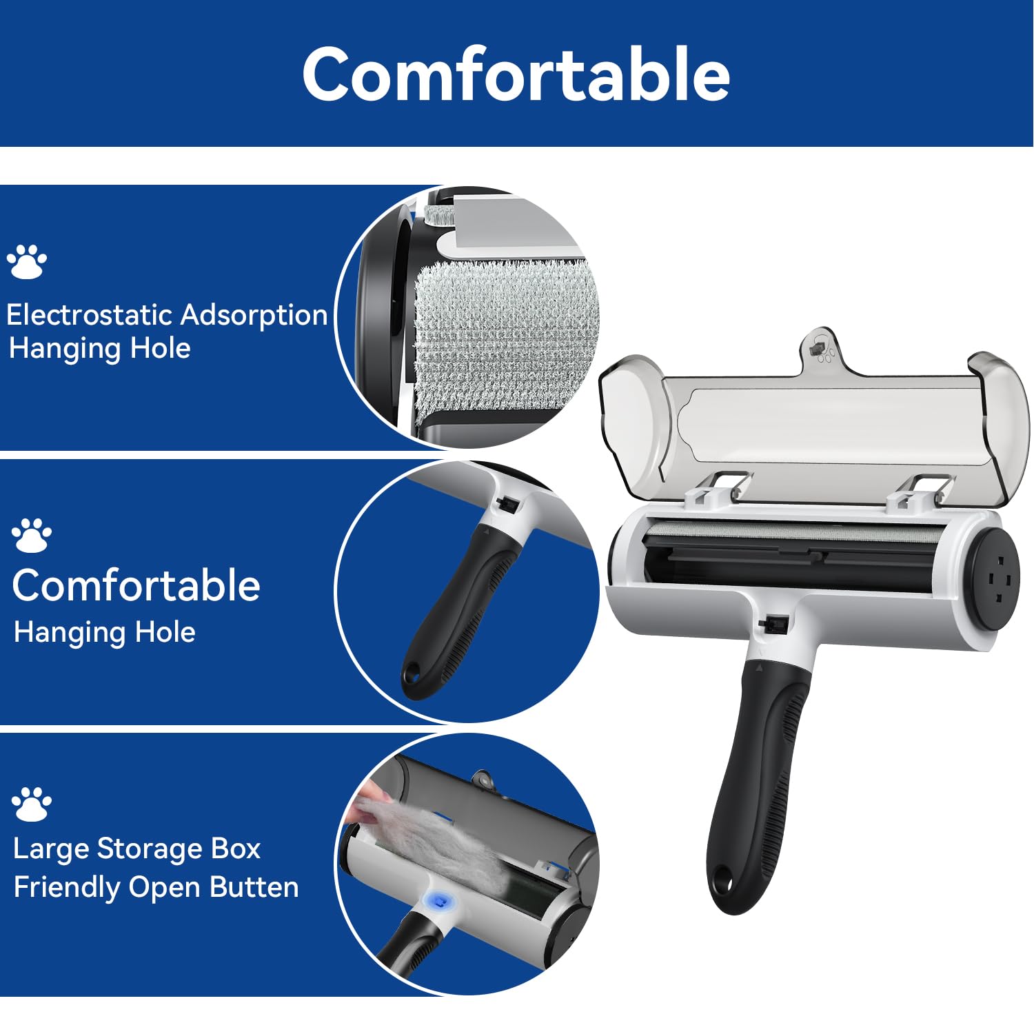 Simplify your cleaning routine with this innovative roller that combines electrostatic technology with convenient self-cleaning design. The built-in collection chamber stores hair during use while the one-button release mechanism makes emptying effortless, creating a practical solution for maintaining fur-free surfaces throughout your home.