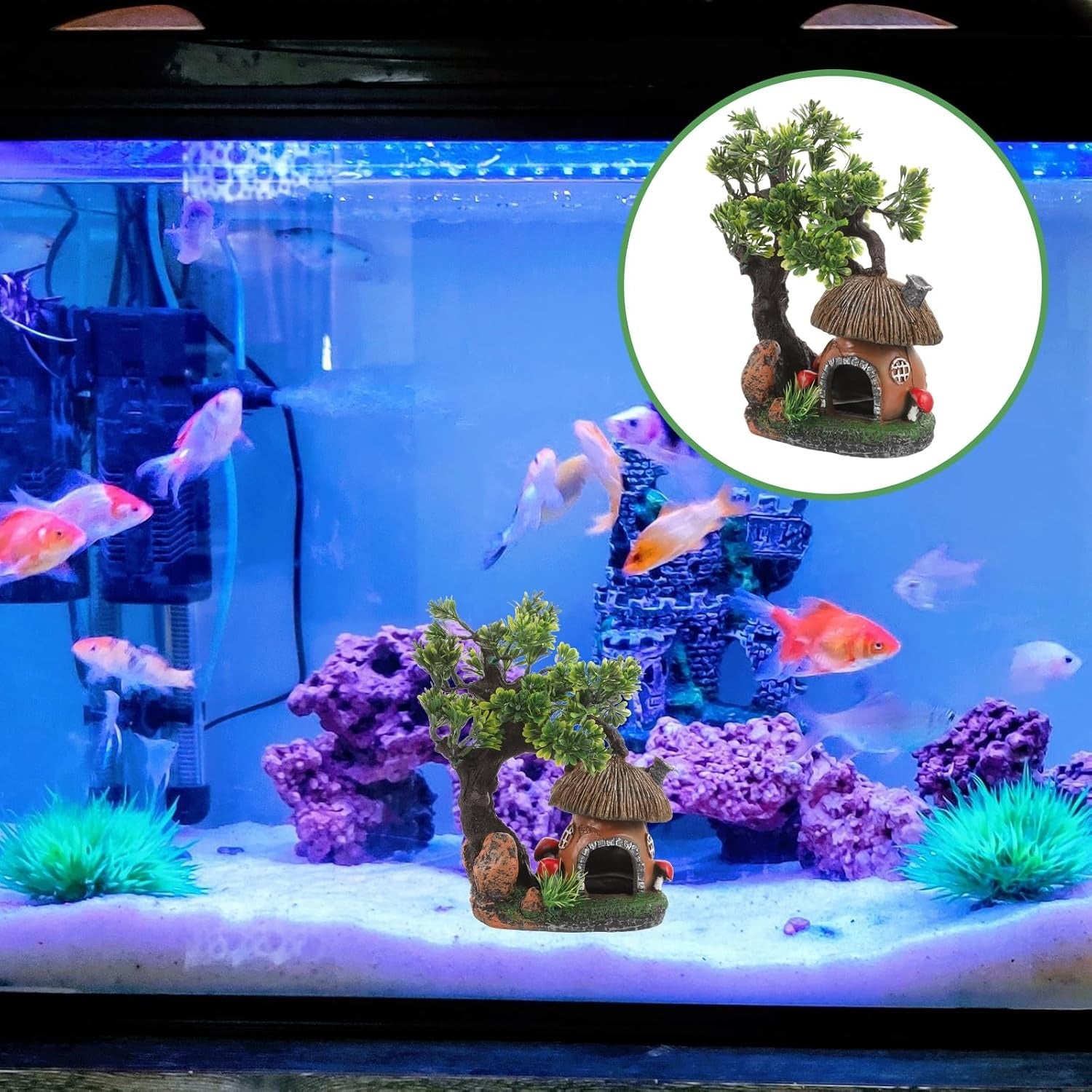 Create a magical underwater sanctuary with this enchanting mushroom house that provides both visual charm and functional shelter for aquarium inhabitants. The detailed rustic design and safe resin construction create a whimsical focal point while offering fish a secure hiding space to reduce stress and encourage natural behavior.