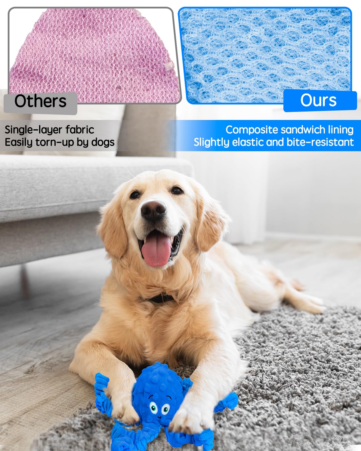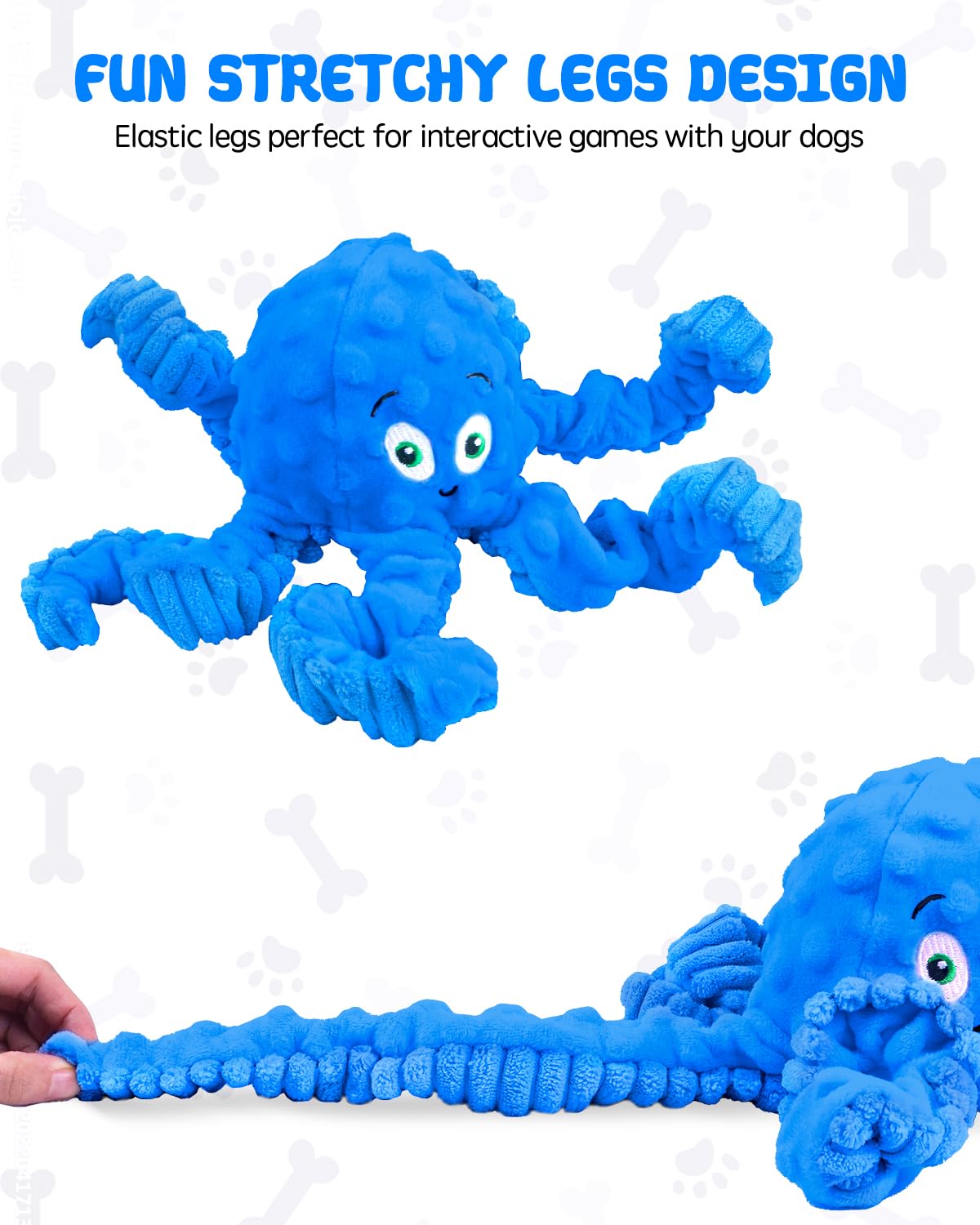 Designed for interactive playtime, this charming octopus toy combines engaging features with durable construction. The stretchy legs with internal bungee provide exciting tug-of-war games while the built-in squeaker captures your pet's attention for hours of entertainment.