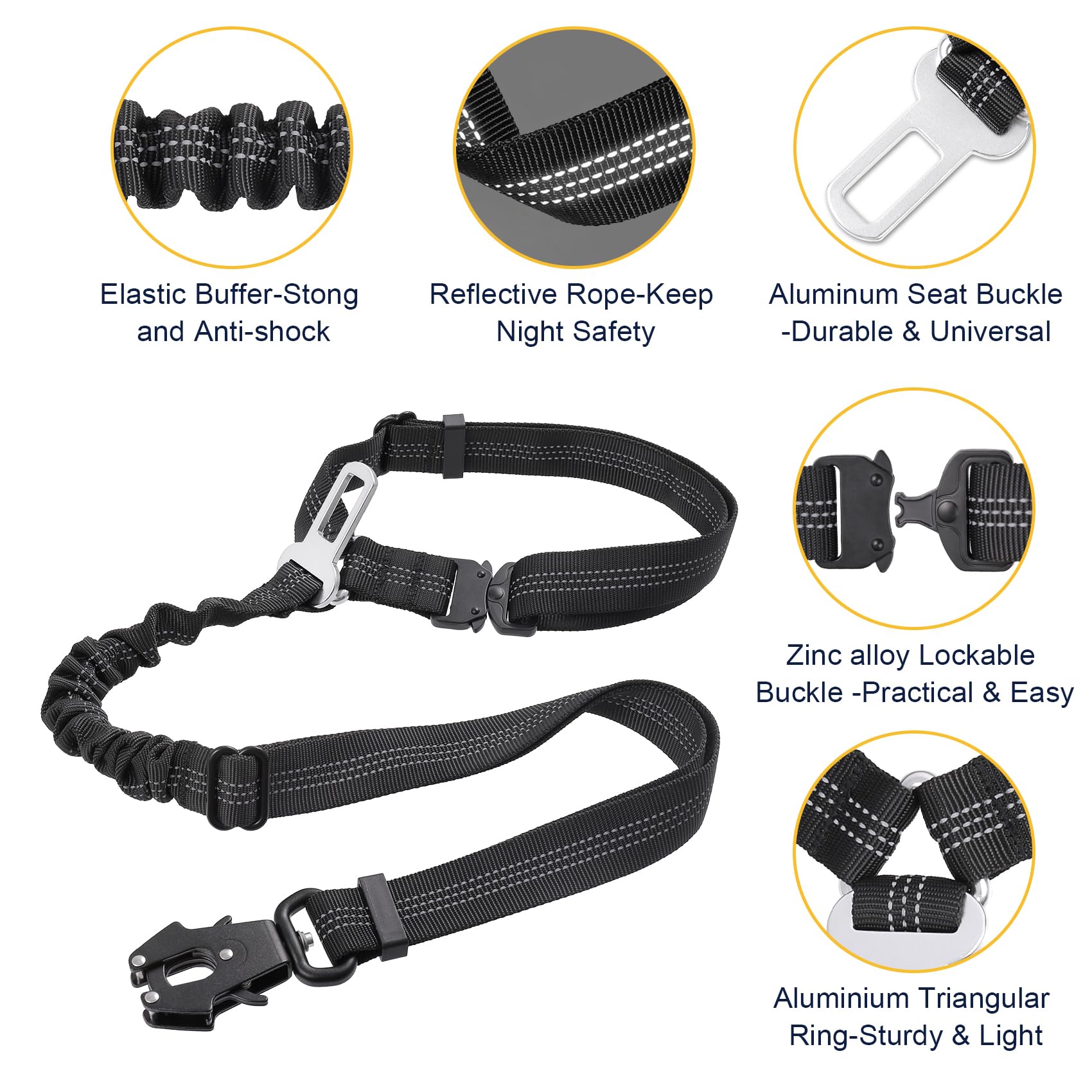 Ensure safe travels with your companion through this versatile car restraint system. The innovative 3-in-1 design combines reliable security with comfortable flexibility, featuring an elastic buffer that protects your pet during sudden stops while allowing natural movement within a safe range.