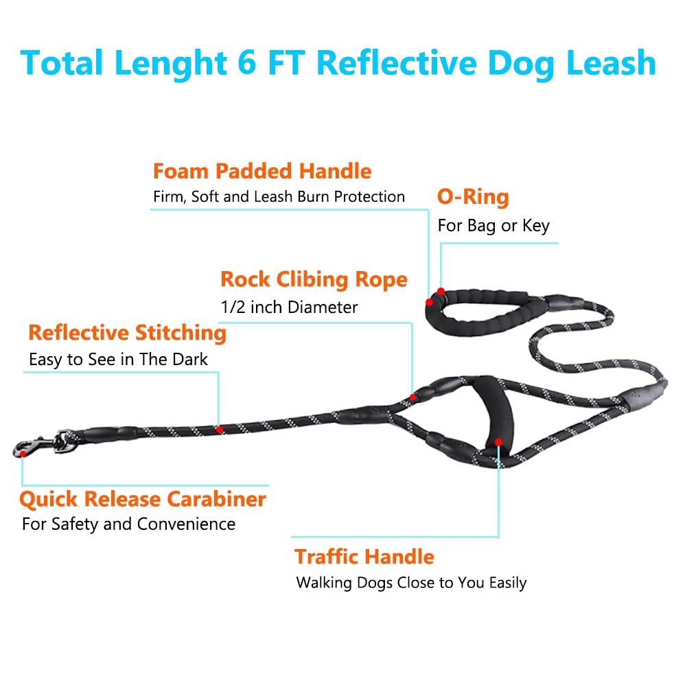 Secure Dual-Handle Leash - Reflective Training Lead with Padded Grips