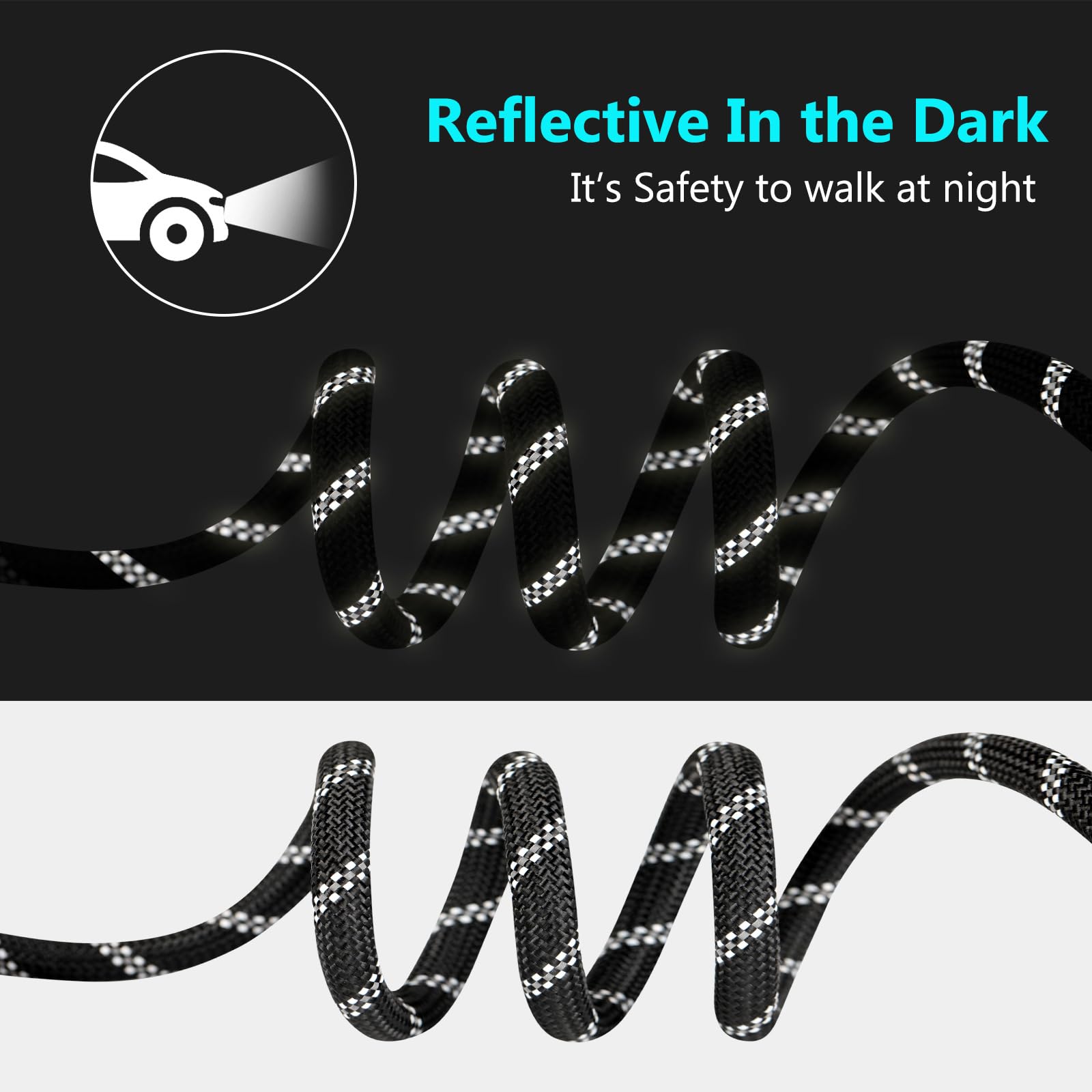 Designed for comfortable control during various activities, this dual-handle leash combines practical functionality with enhanced safety features. The reflective threading ensures visibility during evening walks while the padded grips provide comfortable handling for both casual strolls and training sessions.
