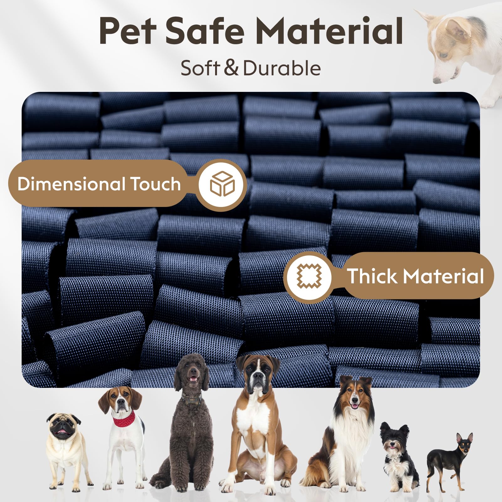 - Soft materials are gentle on noses and paws
