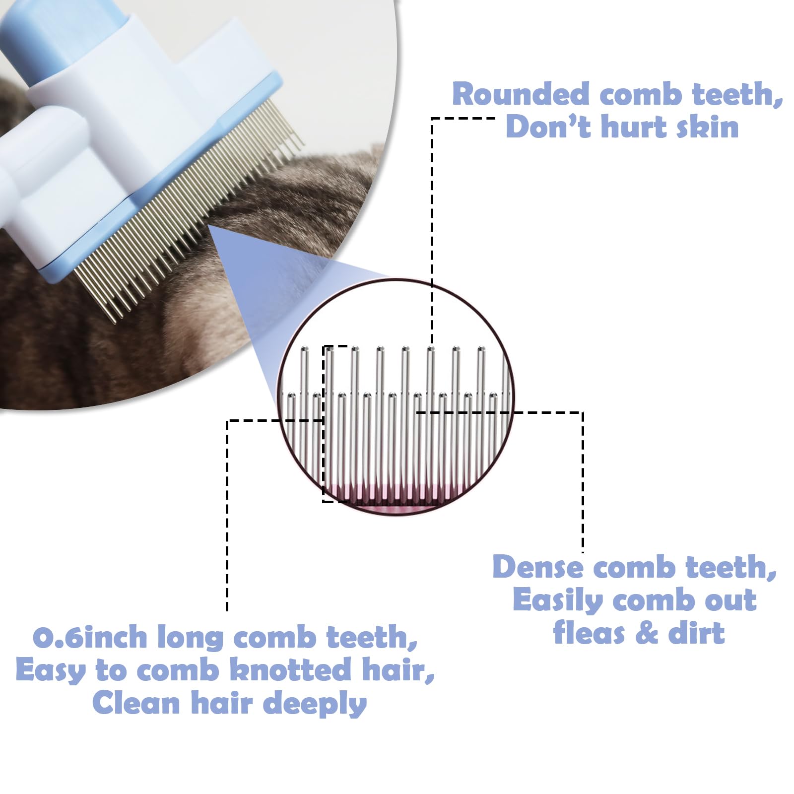 Designed for comfortable grooming sessions, this innovative comb features a self-cleaning mechanism that simplifies maintenance while providing gentle care. The polished teeth glide smoothly through fur to remove loose hair without causing discomfort, making grooming a pleasant experience for your companion.