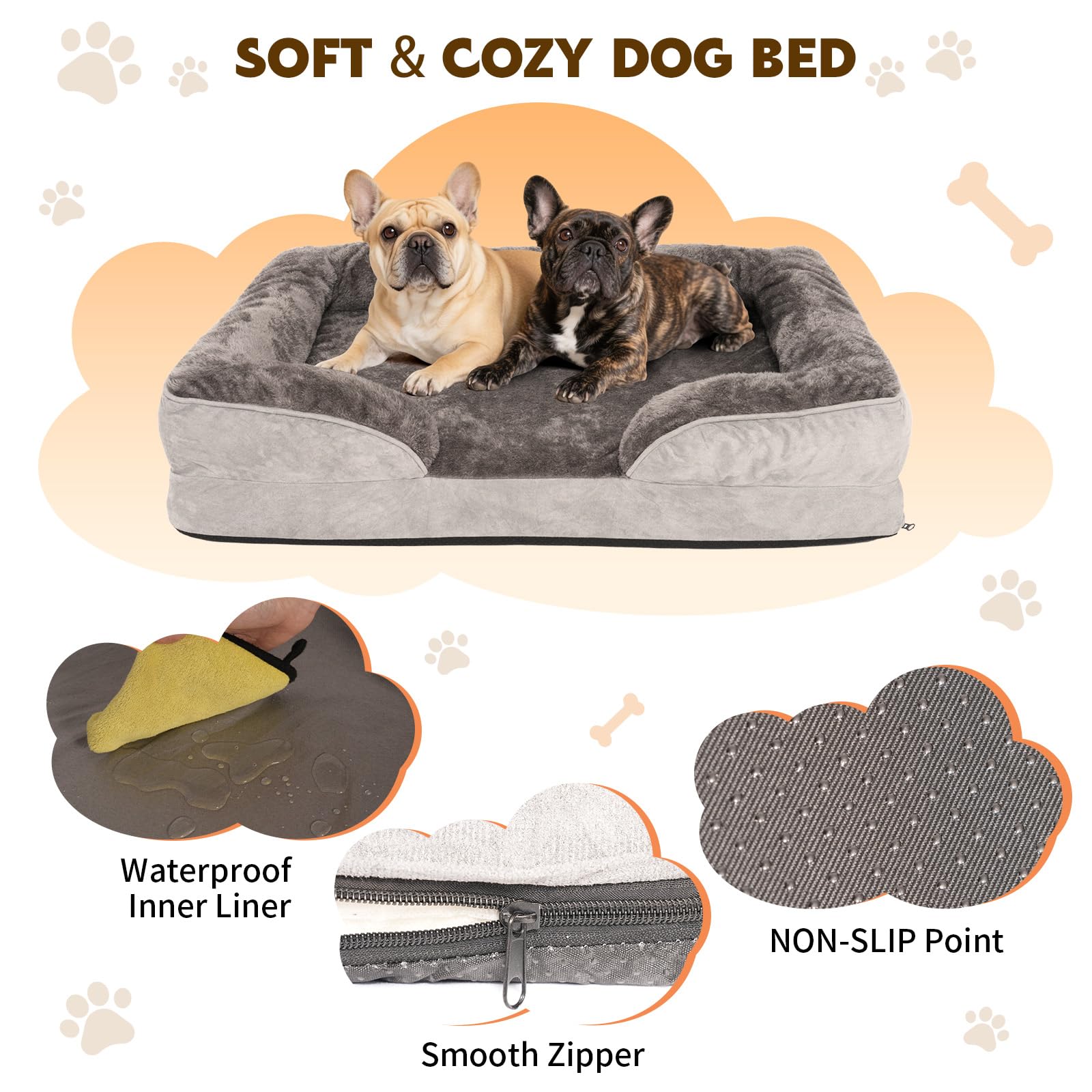 Supportive Dog Sofa Bed - Waterproof Pet Couch with Removable Cover