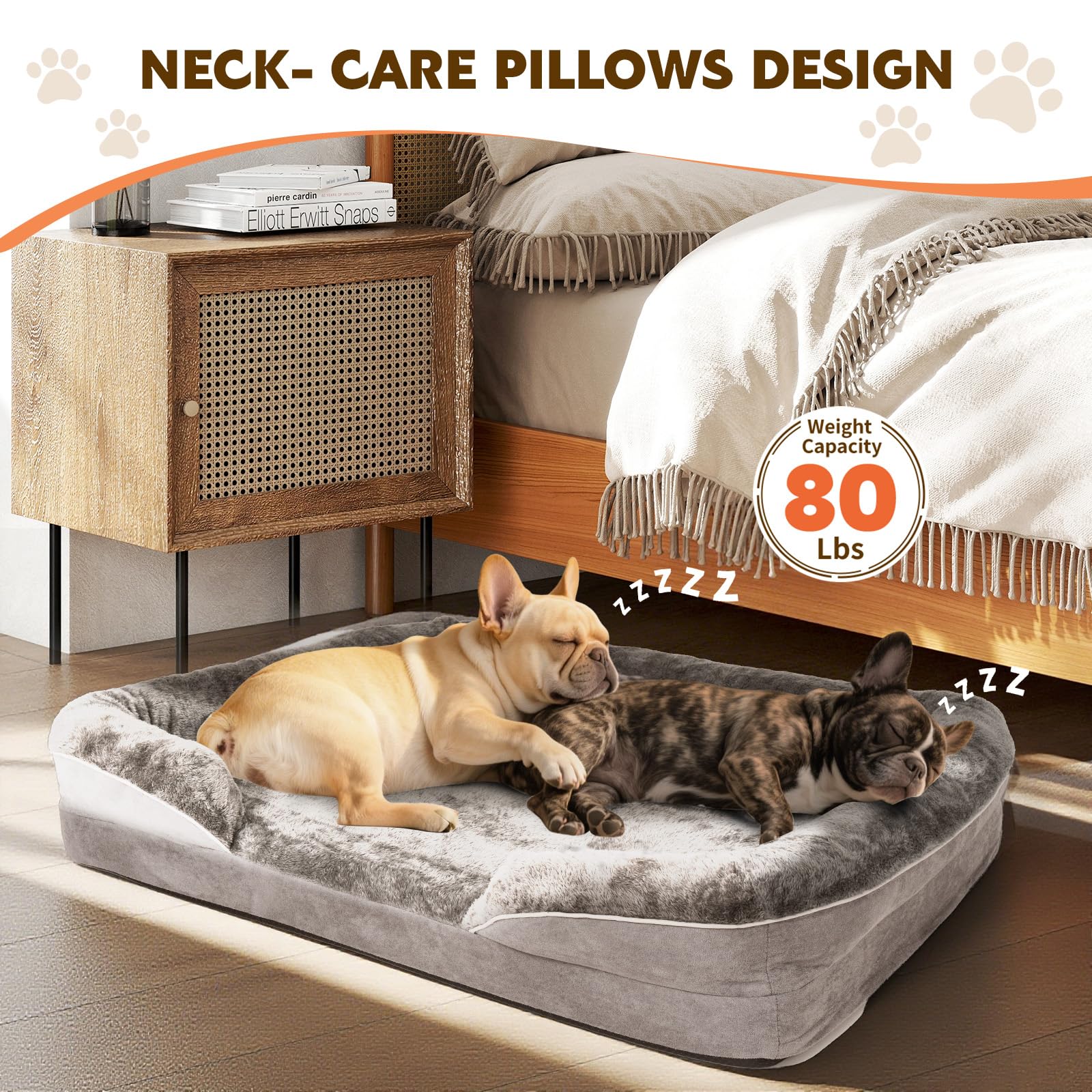 - Design: Wraparound bolsters with secure stitching
