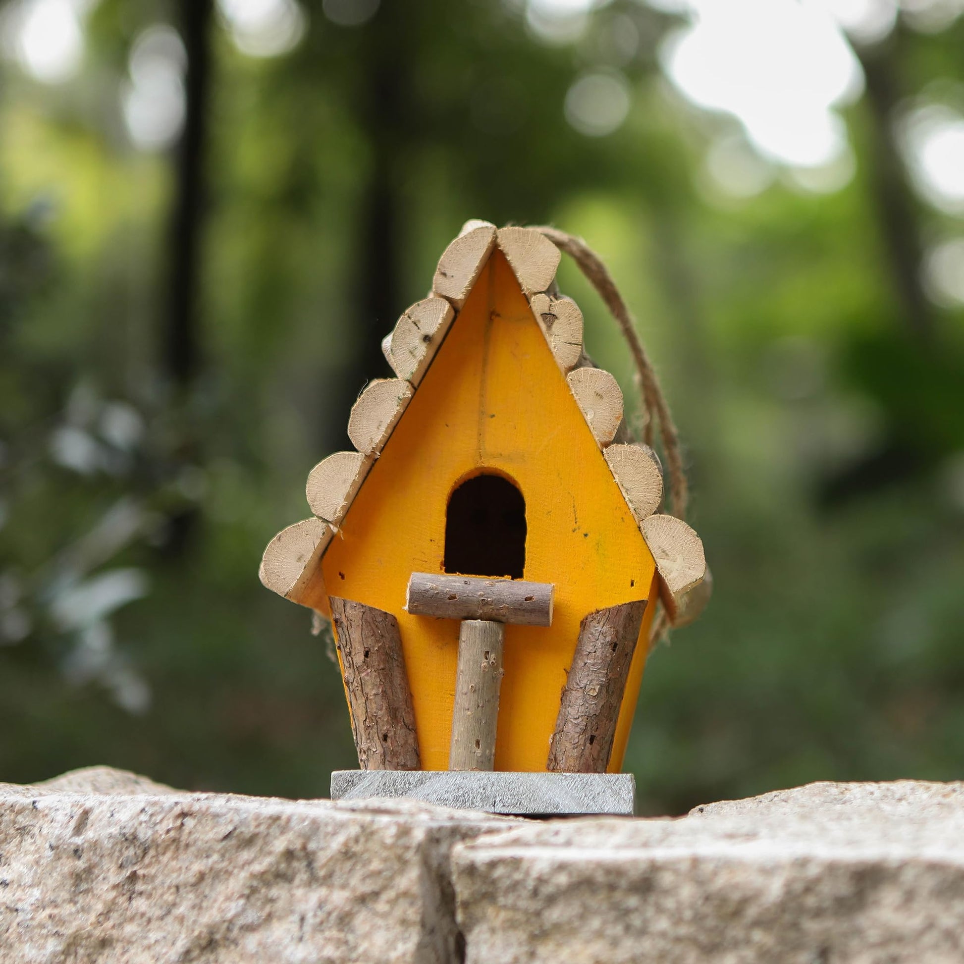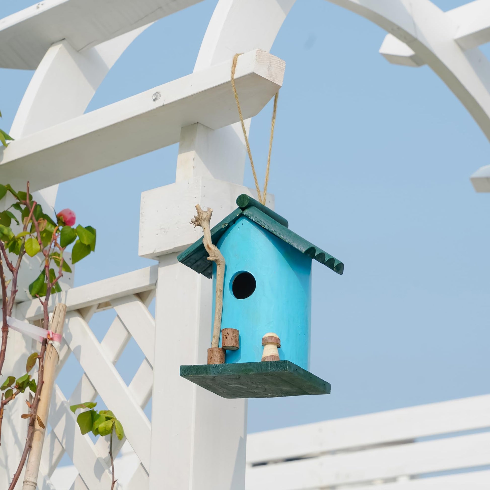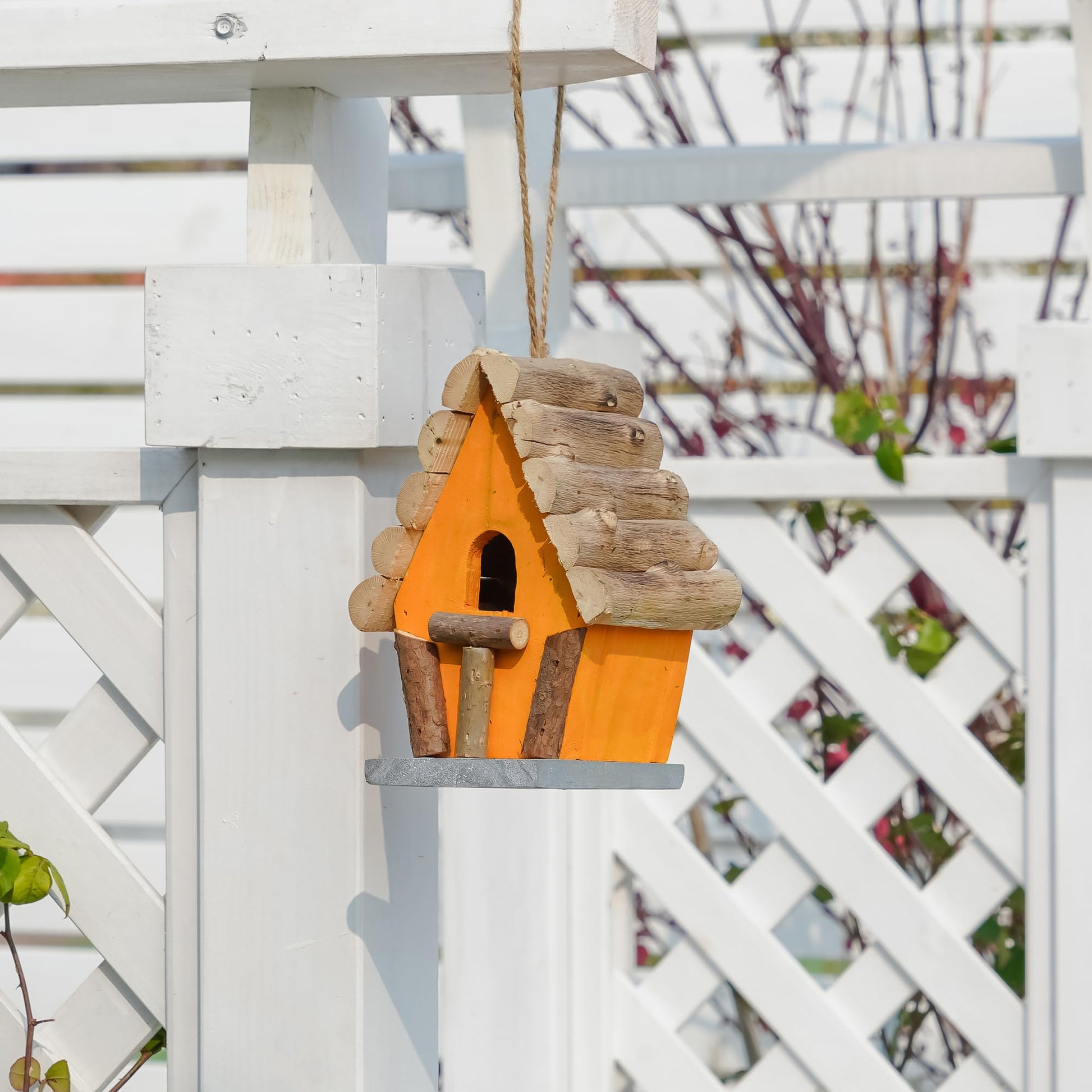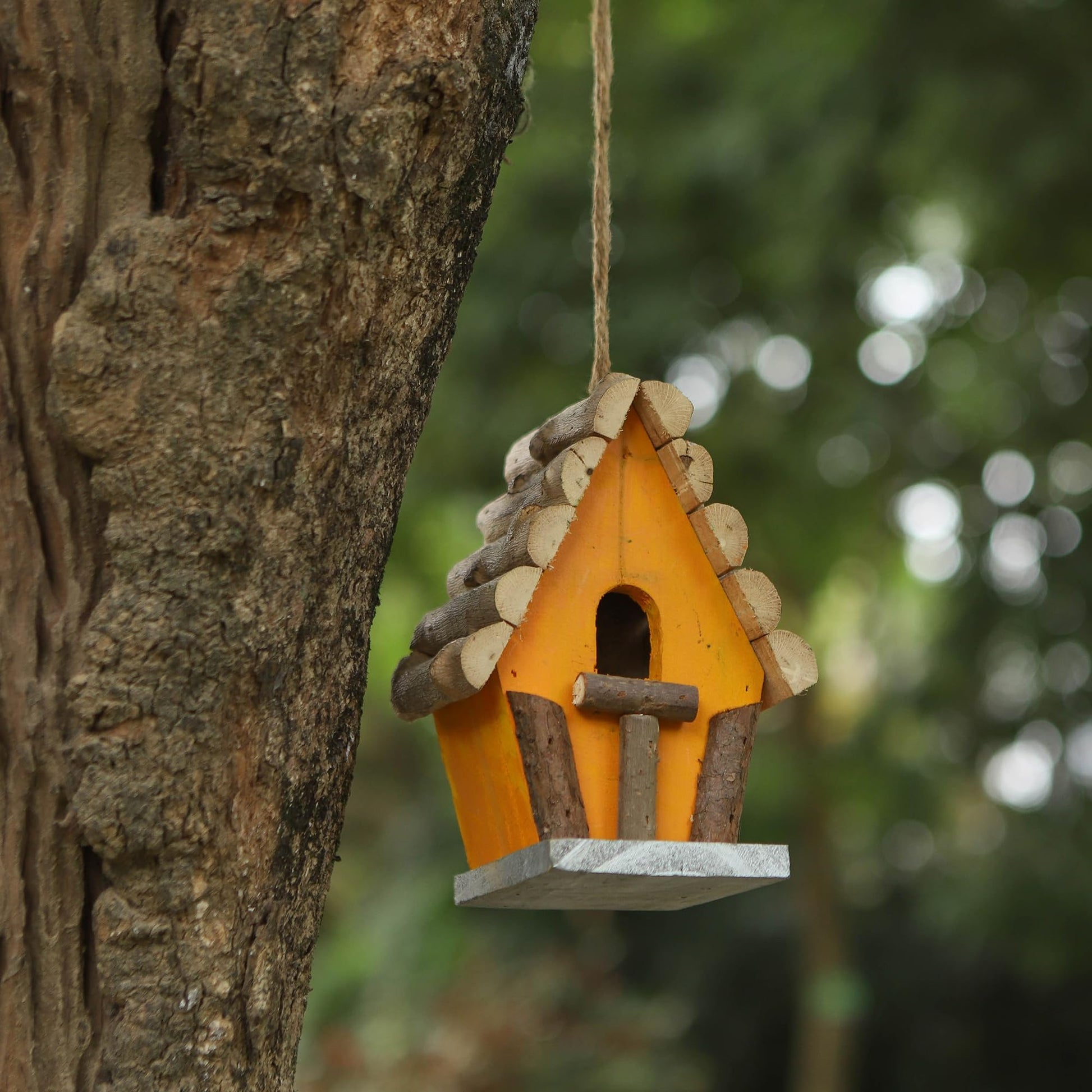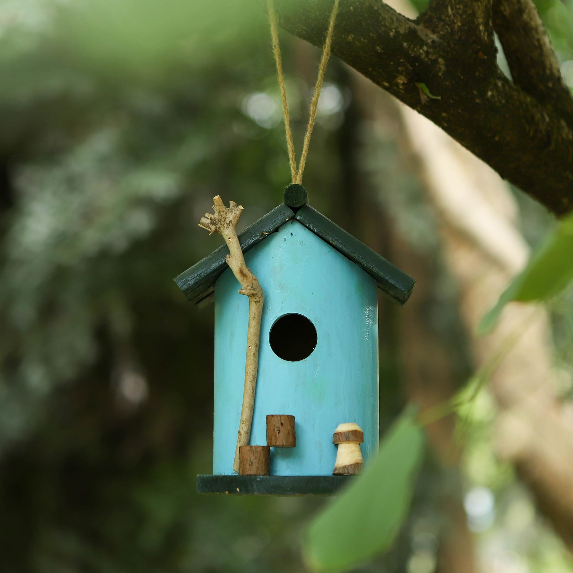 Wooden Bird House with Perch - Hanging Nest for Finches